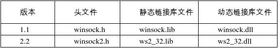 表4-1 Windows Sockets 版本中相應(yīng)的動態(tài)鏈接庫