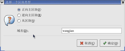 單擊“新建”按鈕→選擇“正向主區(qū)塊”,輸入域名,并確定。