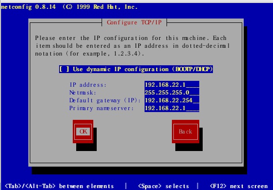 在root 下輸入netconfig, 設(shè)置好IP 地址, 按回車進(jìn)行確定。