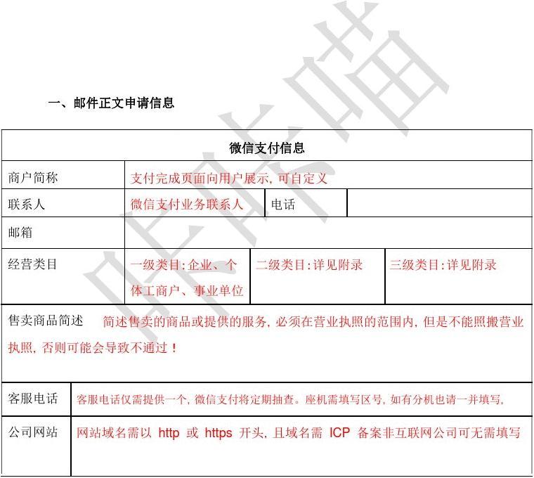 郵件主題:”微信支付申請表“——某地運服 xxx (地域 姓名)