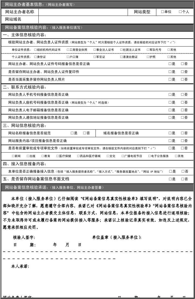 最新廣東省個人網(wǎng)站備案專用的“網(wǎng)站備案信息真實性核驗單” 2017-03-27 23683 網(wǎng) 站 備 案 信 息 真 實 性 核 驗 單 網(wǎng) 站 備 案 信 息 真 實 性 核 驗 單