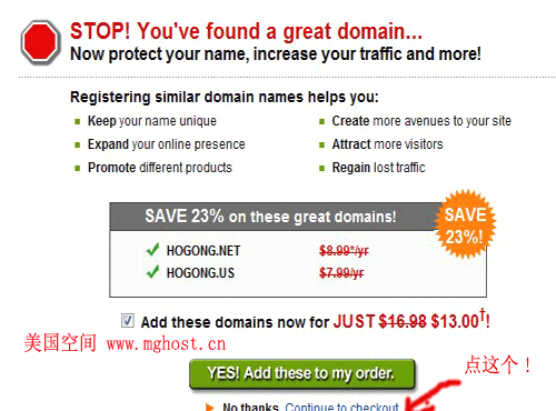 域名沒(méi)有被注冊(cè)的話(huà),出現(xiàn)下圖,如果已經(jīng)被注冊(cè),你再重新選擇: