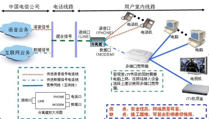 2、ADSL 上網(wǎng) iTV有線接入組網(wǎng)方式