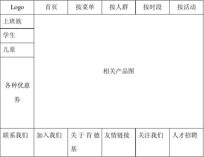 聯系我們: 對產品的一些常見問題進行服務與解答、進行提問 關于肯德基:介紹肯德基的歷程、創(chuàng)始人、影響力、簡介 友情鏈接:對其他品牌的一些鏈接