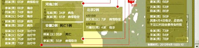 21. 禽流感病毒(H7N9)悄然來襲,人們時刻在關(guān)注疫情的發(fā)展,下圖為截止到4.15. 日的疫情圖,根據(jù)圖示內(nèi)容回答問題。(拖動滾動條可瀏覽全圖)