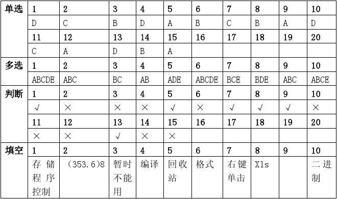 19、機(jī)器語言是能夠直接被計(jì)算機(jī)識(shí)別和執(zhí)行的計(jì)算機(jī)成細(xì)設(shè)計(jì)語言。( T ) 20、計(jì)算機(jī)病毒是由于非法操作計(jì)算機(jī)而產(chǎn)生的。(F )