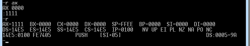 如下,將AX 中的值修改成1111,并查看修改結(jié)果。