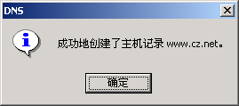 右擊【cz.net 】,單擊【新建主機(jī)】,輸入名稱【W(wǎng)WW 】,IP 地址【192.168.0.2】,即成功地創(chuàng)建了主機(jī)www.cz.net 。