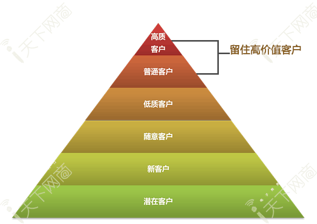 在我們的客戶庫(kù)中,有些客戶是我們必須要保留的,而有些客戶的價(jià)值是相對(duì)有限的。這里雖然說得有些現(xiàn)實(shí),不過我們必須意識(shí)到,為最有價(jià)值的客戶提供最優(yōu)質(zhì)的服務(wù)、提高他們的忠誠(chéng)度,是我們電子商務(wù)企業(yè)能夠長(zhǎng)足發(fā)展的基礎(chǔ)。