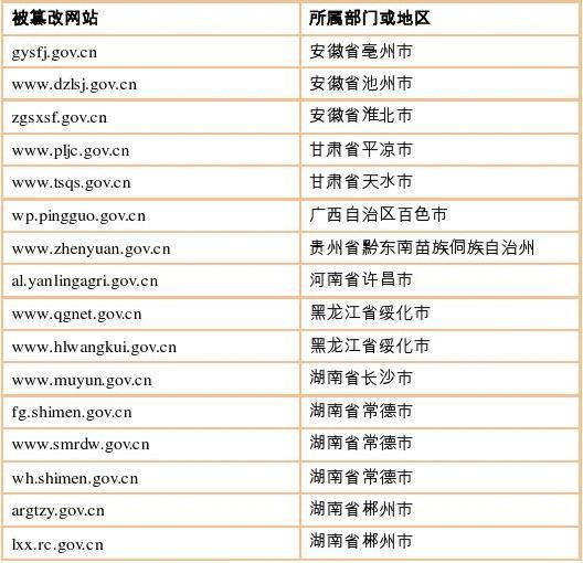 截至6月30日仍未恢復的部分被篡改政府網(wǎng)站3如表3所示。