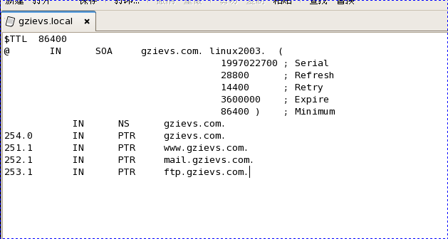 文件名,所以在此可以使用cp 命令來產(chǎn)生gzievs.zone 這個(gè)文件,cp 是復(fù)制的命令,那么同時(shí)又保留了