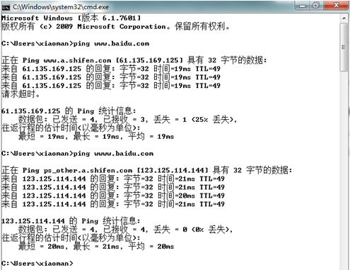 由于大的網(wǎng)站一般有多個(gè)web 服務(wù)器, 以避免一臺(tái)服務(wù)器出現(xiàn)問題后網(wǎng)站不能正確運(yùn)行的情況, 二每臺(tái)服務(wù)器的ip 都不同,所以每次ping 的結(jié)果并不一定相同。 示例: