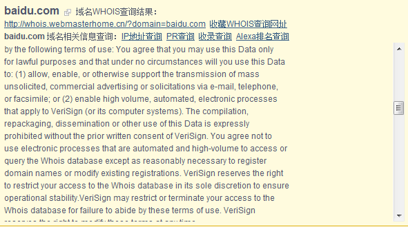 Whois 簡(jiǎn)單來說,就是一個(gè)用來查詢域名是否已經(jīng)被注冊(cè),以及注冊(cè)域名的詳細(xì)信息的數(shù)據(jù)庫(如域名所有人、域名注冊(cè)商、域名注冊(cè)日期和過期日期等)。通過域名Whois 查詢,可以查詢域名歸屬者聯(lián)系方式,以及注冊(cè)和到期時(shí)間, 可以whois.chinaz.com 等進(jìn)行訪問!