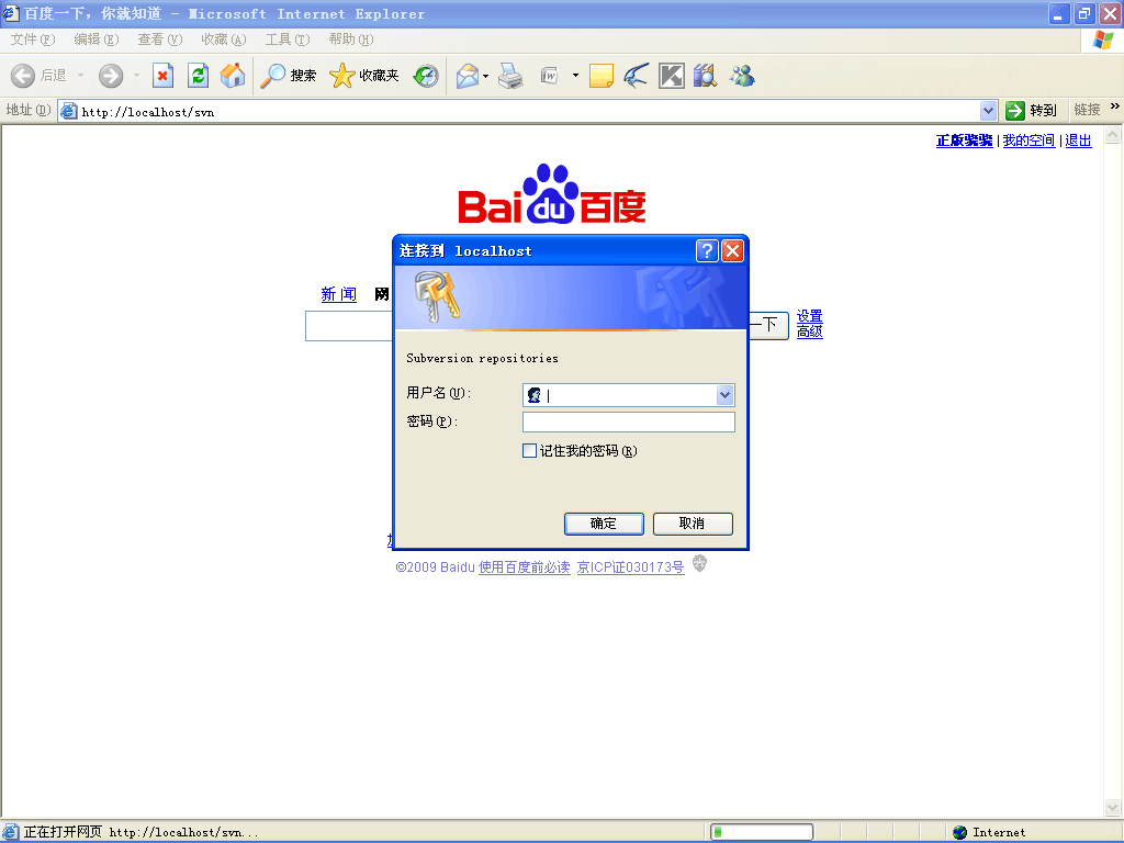 啟動ie 瀏覽http://localhost/svn要求輸入密碼 ,如下圖