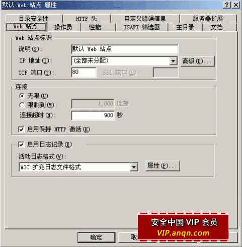 在“默認(rèn)Web 站點(diǎn)”上按鼠標(biāo)右鍵,選擇“屬性”,彈出默認(rèn)Web 站點(diǎn)設(shè)置窗口: