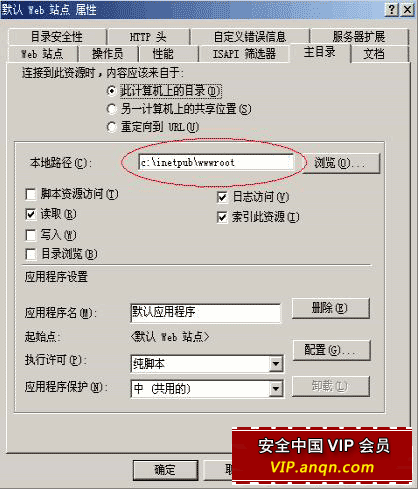 在“本地路徑”右邊,是網(wǎng)站根目錄,即網(wǎng)站文件存放的目錄,默認(rèn)路徑是“c:inetpubwwwroot”。如果想把網(wǎng)站文件存放在其他地方,可修改這個(gè)路徑。