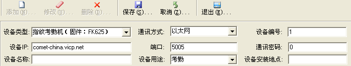 然后安裝《U200廣域網(wǎng)考勤管理軟件》,在添加設(shè)備的時(shí)候,“設(shè)備類(lèi)型”為“ARM9系列指紋考勤機(jī)”