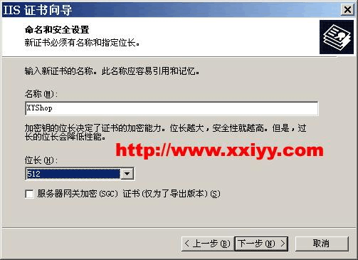 繼續(xù)“下一步”,會要求你輸入一個容易記憶的名稱來標識你的證書。同時會要求你選擇“位長”,實際上就是加密強度。“位長”越大,越安全。當(dāng)然這是以犧牲性能為代價的(圖10)。