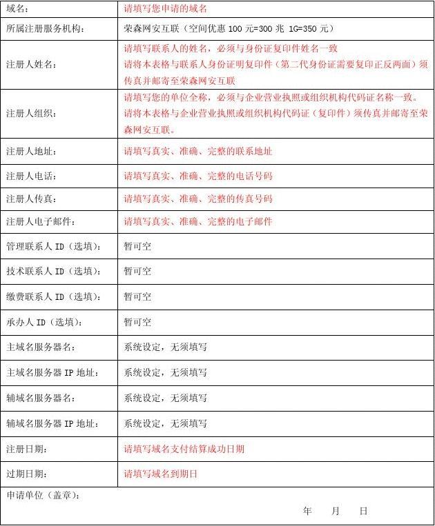 榮森網(wǎng)安互聯(lián)CN 英文域名、國內(nèi)中文域名注冊申請表
