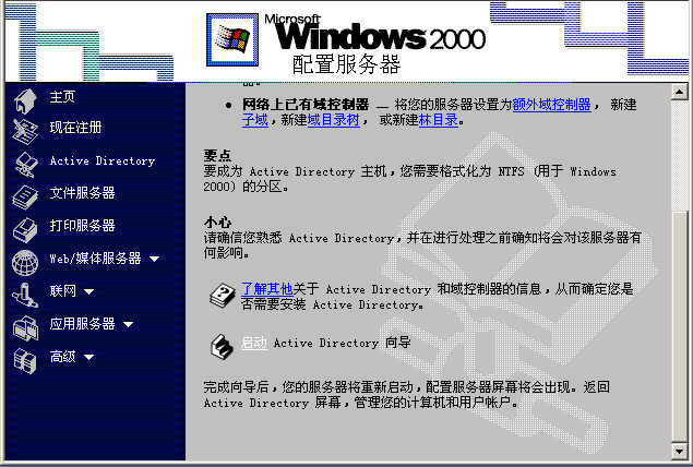 A 、從開始菜單---程序---管理工具---配置服務(wù)器---選擇安裝Dctive Directory ;點擊“啟動”,使用活動目錄進行DC 之間的復(fù)制信息,能
