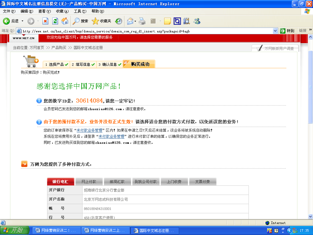 2. 進(jìn)入中國萬網(wǎng):http://www.net.cn/,熟悉域名申請過程和繳費(fèi)情況。