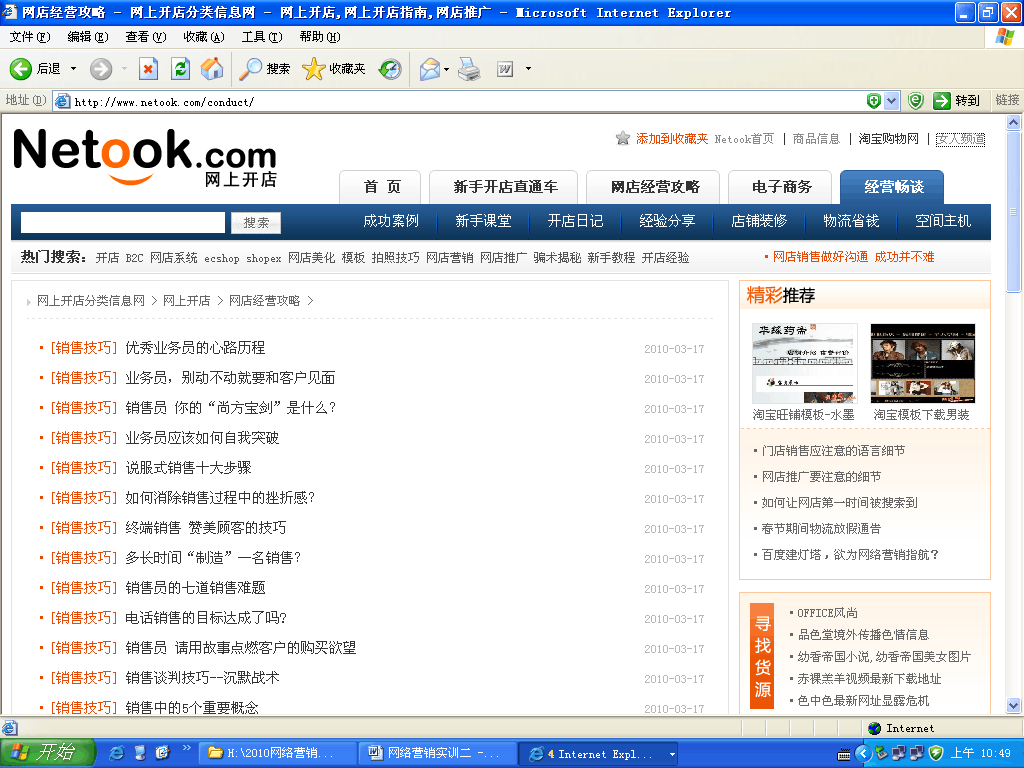 4. 通過網(wǎng)智電子商務(wù)平臺(http://www.netook.com/)建立個人網(wǎng)上商店,熟悉和掌握營銷網(wǎng)站的規(guī)劃與建設(shè)要點(diǎn)。