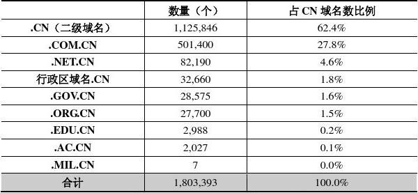 表4.4 按類別劃分的CN 域名數(shù)