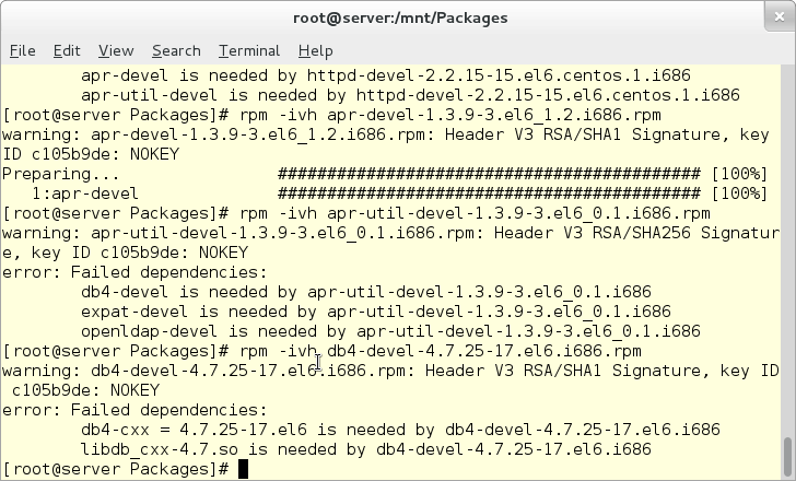 嘗試安裝apr-devel 包 apr-devel 安裝成功。 再安裝apr-util-devel 包