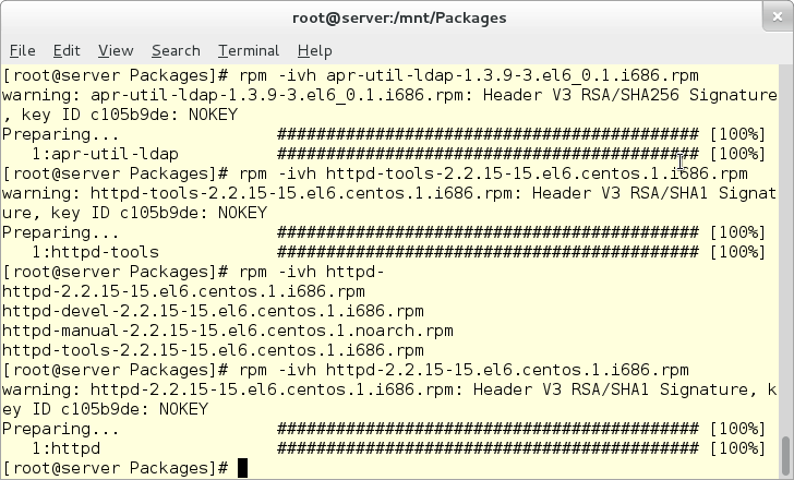 rpm -ivh httpd-2.2.15-15.el6.centos.1.i686.rpm