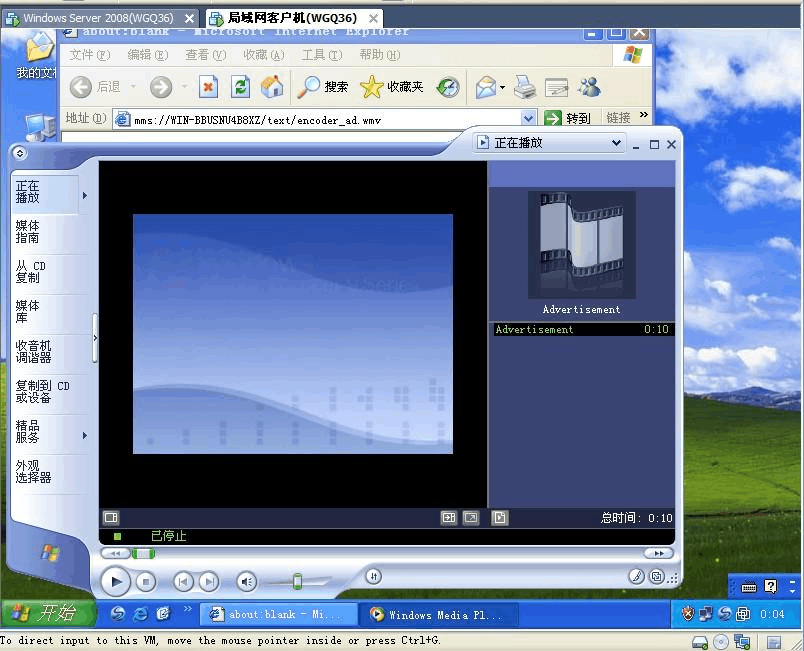 1) 創(chuàng)建點(diǎn)播發(fā)布點(diǎn)。在客戶機(jī)點(diǎn)播某個(gè)視頻。截圖(圖11)