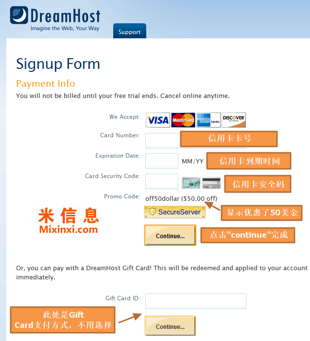 最新deramhost 購買教程和優(yōu)惠碼的使用購買Dreamhost 主機,新客戶首次開通帳戶必須有一張自己的信用卡驗證才行。沒有信用卡的可以選擇到淘寶上購買虛擬信用卡完成帳戶注冊。dreamhost