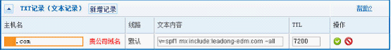 請在貴公司域名管理里添加一條如下的TXT 記錄:v=spf1 mx include:leadong-edm.com ~all