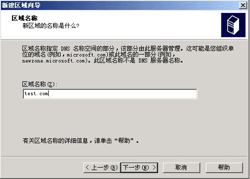 (4)在“區(qū)域名稱(chēng)”文本框中輸入要?jiǎng)?chuàng)建的域名“test.com” ,單擊“下一步” ,進(jìn)入 “區(qū)域文件”對(duì)話(huà)框,如圖 5-8 所示。