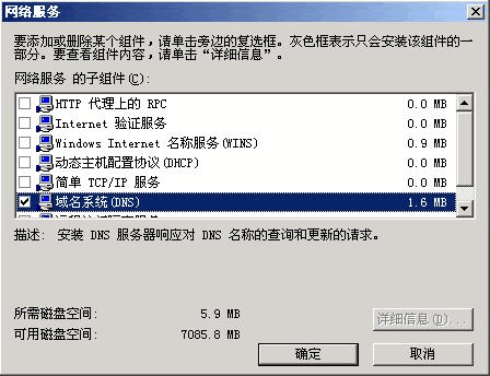 (3)將“域名系統(tǒng)”前的選項(xiàng)框選中,單擊“確定”按鈕,返回“windows 組件向?qū)А?對(duì)話(huà)框。