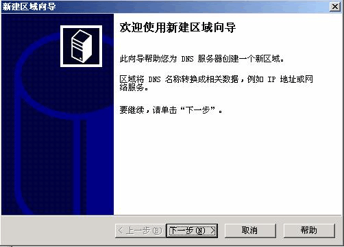 (1)右擊“dnsmgmt”控制臺(tái)左側(cè)的“正向查找區(qū)域” ,在彈出的快捷菜單中選擇“新 建區(qū)域” ,彈出“歡迎使用新建區(qū)域向?qū)А睂?duì)話(huà)框,如圖 5-5