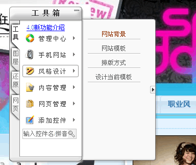也可以點(diǎn)擊“風(fēng)格設(shè)計(jì)”中的“網(wǎng)站模板”選擇“設(shè)計(jì)當(dāng)前模板”對網(wǎng)站模板進(jìn)行設(shè)計(jì)。