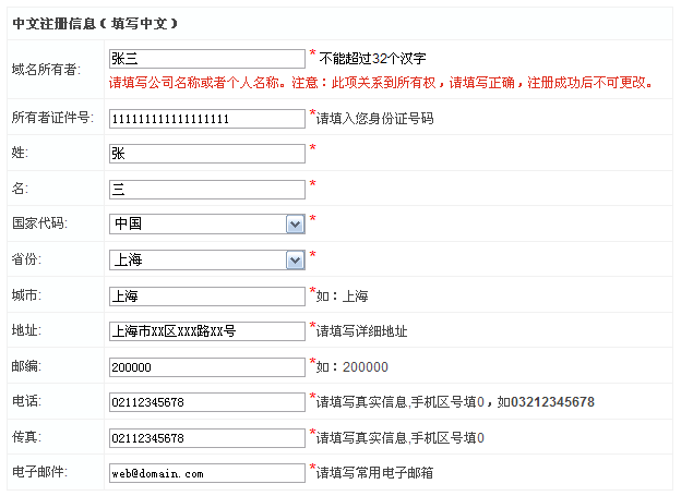 注意事項(xiàng):域名所有者代表域名所有權(quán),請(qǐng)千萬別填錯(cuò)。