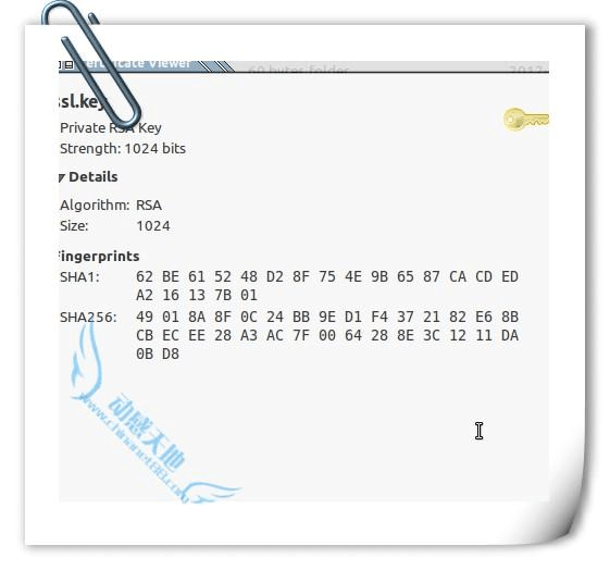 SSLCertificateFile 就好了,后面的 KeyFile 不用填(保持它們的注釋狀態(tài))。 插播:Linux 是不分辨文件擴(kuò)展名的,所以理論上上面的這些公鑰婆鑰私鑰的擴(kuò)展名都是可以隨便起的,甚至不填也可以,但是為了方便自己弄清楚,我習(xí)慣上是這樣命名的:只包含證書信息和公鑰的文件擴(kuò)展名為 crt,同時(shí)包含了公鑰和私鑰的文件擴(kuò)展名為 pem,只包含私鑰的文件擴(kuò)展名為 key。