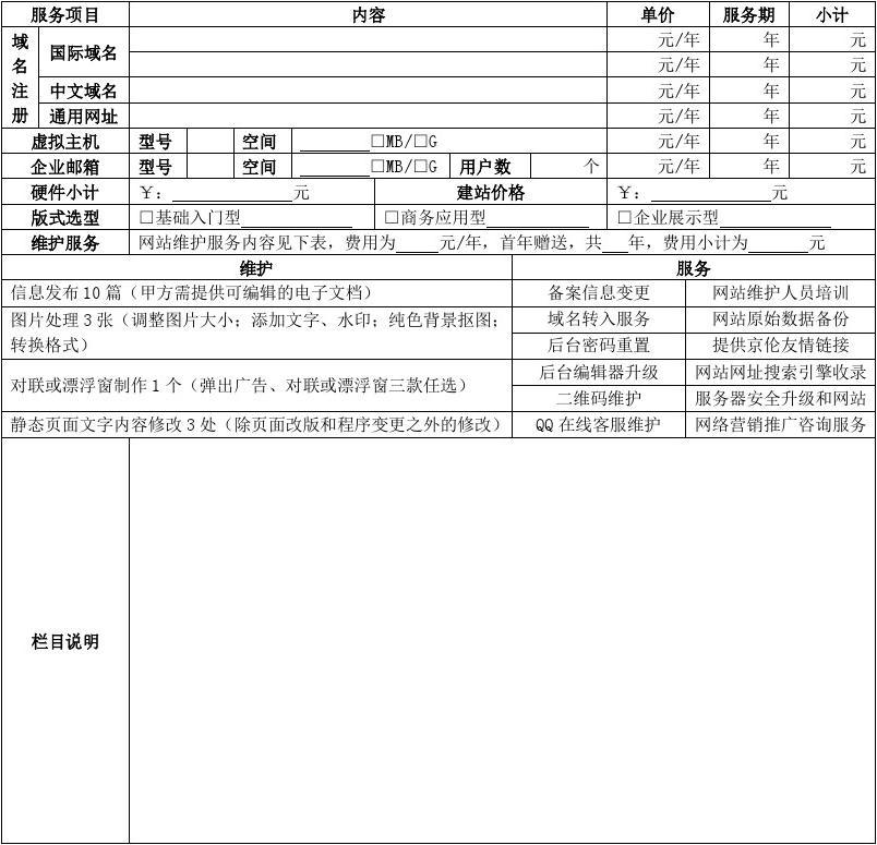 標(biāo)準(zhǔn)建站服務(wù)合同