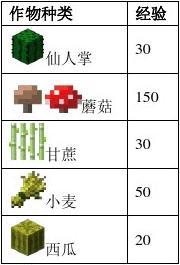 經(jīng)驗(yàn)獲得:收獲作物 經(jīng)驗(yàn)列表:見右方