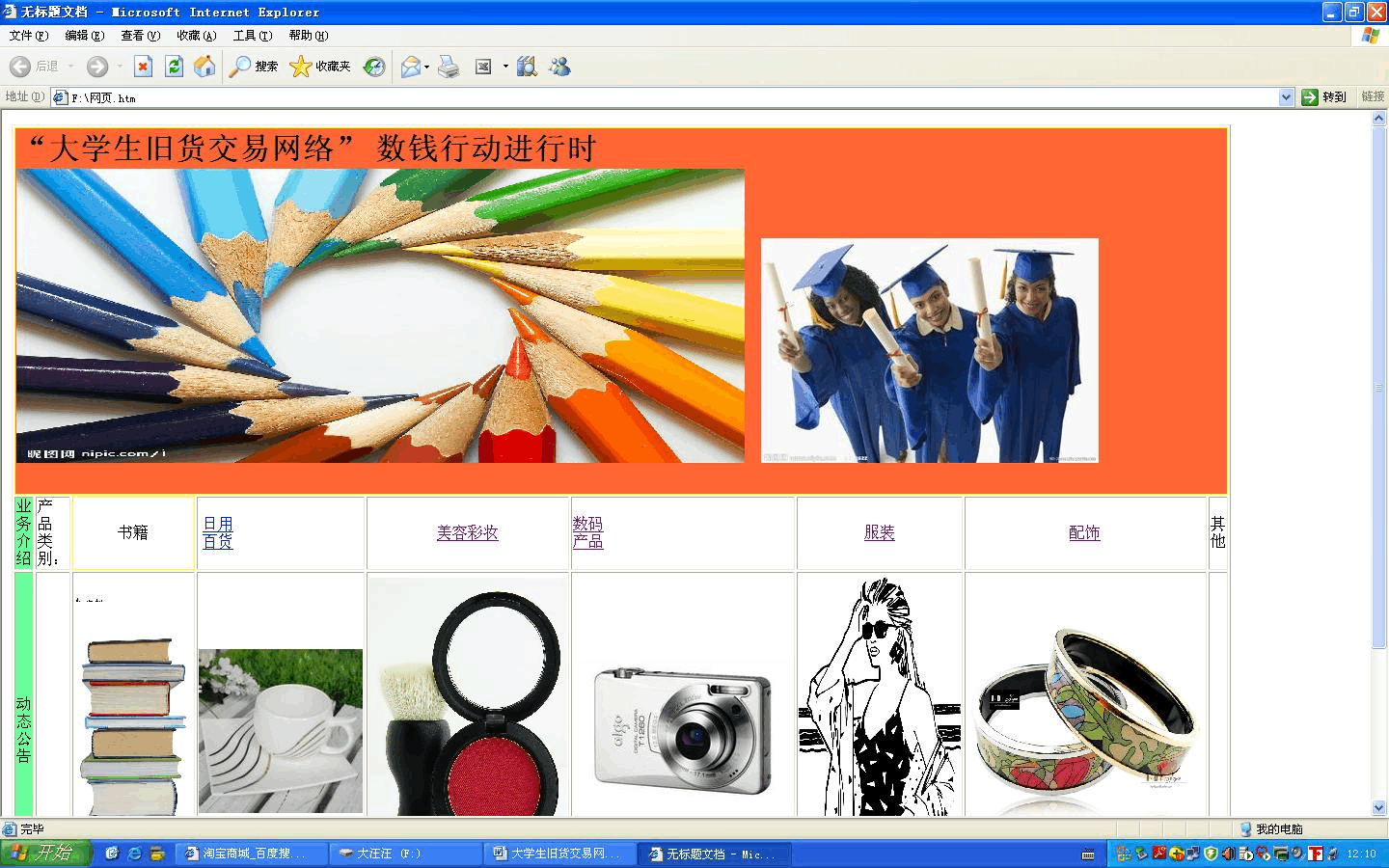 目前,隨著信息的頻繁更新與傳播,人民生活的物質更新速度也在不斷加快。對于資源相對匱乏的社會來說,這無疑是一種資源浪費。為提高資源利用率,針對我們身邊的高校大學生廢棄物的處理問題,特進行此次“大學生舊貨交易網絡經營策劃”活動,希望能給廣大高校大學生以啟示,開創(chuàng)一個大學生的舊貨市場,提高資源利用率。