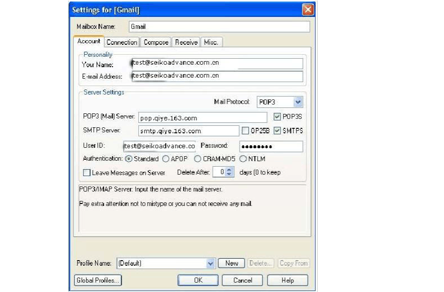 接收服務(wù)器pop3:pop3.qiye.163.com