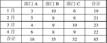 (69)(70) 某公司三個(gè)部門(mén)今年前四個(gè)月的銷(xiāo)售額(單位:萬(wàn)元)統(tǒng)計(jì)表抄錄如下: