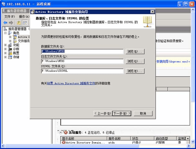 日志文件文件夾: F:WindowsNTDS