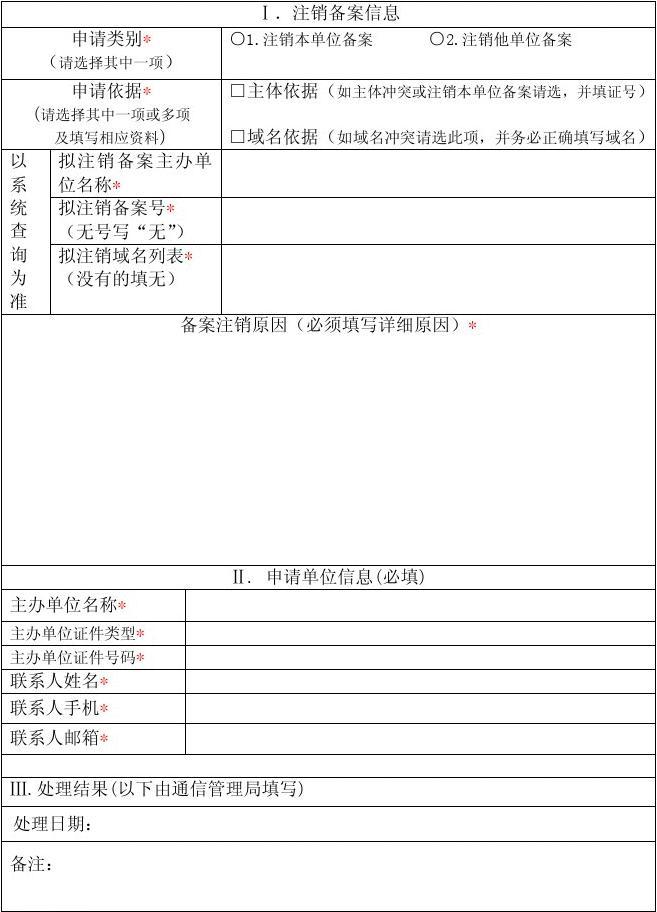 5. 注銷(刪除) 備案必須提供蓋有公章的申請(qǐng)表、域名證書復(fù)印件