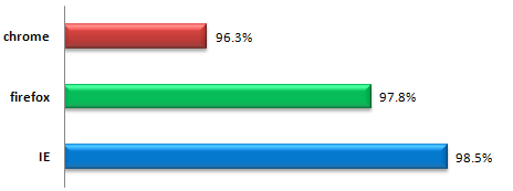業(yè)福網(wǎng)通過微軟IE 、火狐firefox 和谷歌chrome 三款瀏覽器分布監(jiān)測網(wǎng)站的支持情況。其中98.5的企業(yè)網(wǎng)站能夠支持微軟IE ,火狐firefox 的支持率是97.8,谷歌chrome 96.3.