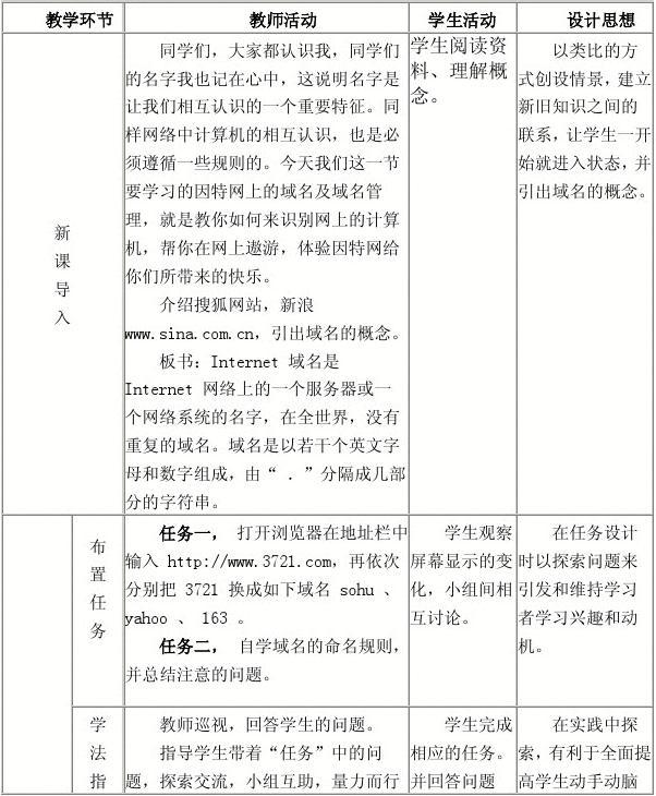1.要求學生了解域名的概念及其命名規(guī)則,知道域名的管理辦法和重要的管理機構(gòu); 2.通過操作,學會規(guī)范地申請、使用域名的方法,熟悉域名的注冊過程;