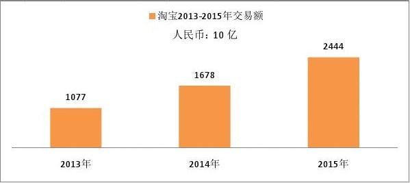 圖 3 淘寶2013年-2015年度交易額柱形圖