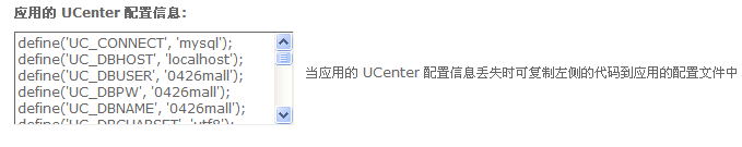第五步:提交完成后,復(fù)制UCenter 配置信息代碼