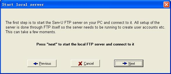 單擊“Next”,這個(gè)窗口是讓你在本地第一次運(yùn)行FTP 服務(wù)器,只要“Next”就行了: